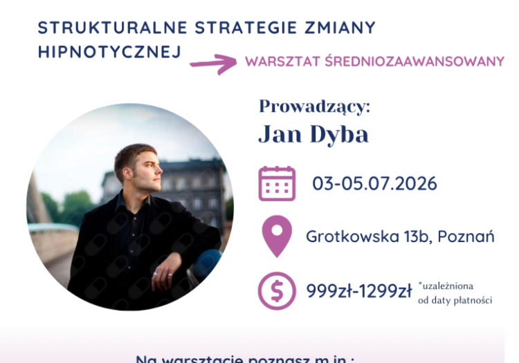 Strategiczna praca w głębokich stanach hipnotycznych – strukturalne strategie zmiany hipnotycznej. Warsztat średniozaawansowany